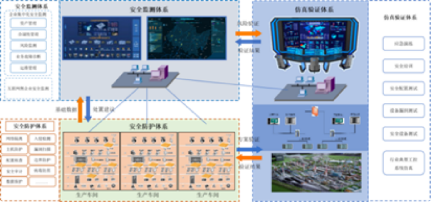 工程實(shí)施部分由安全監(jiān)測(cè)體系、安全防護(hù)體系、仿真驗(yàn)證體系三大體系構(gòu)成。