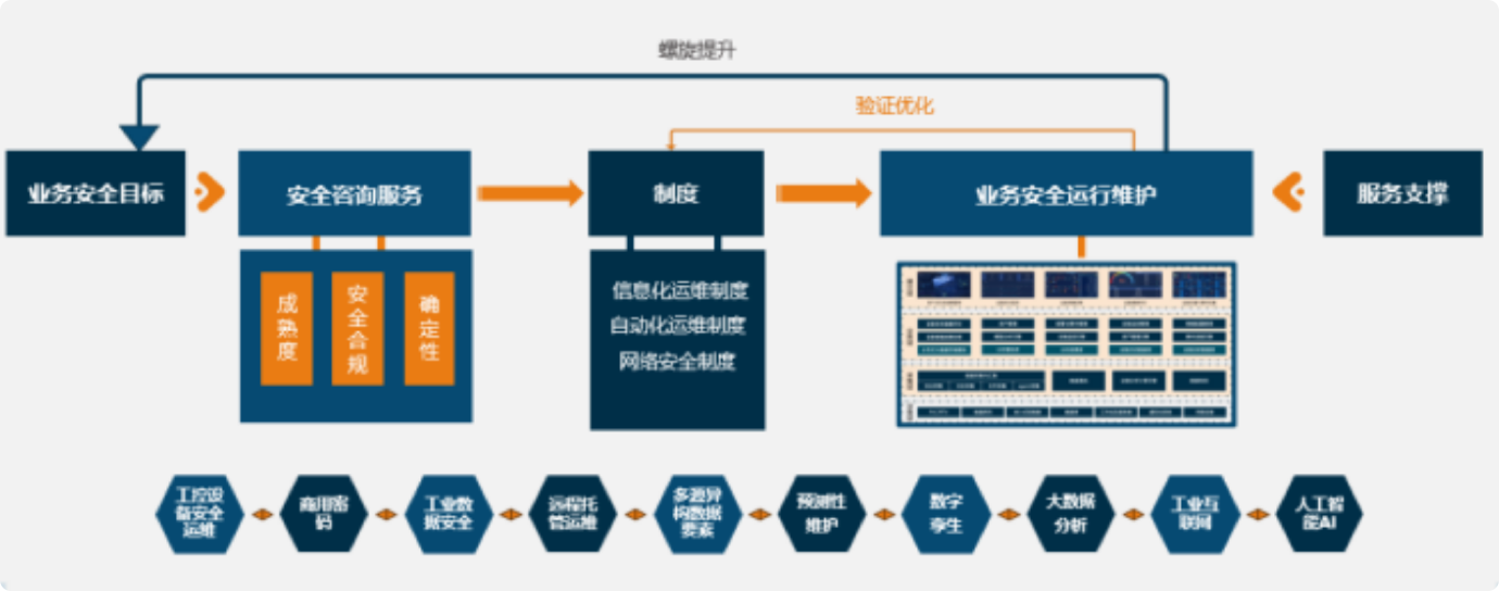 在安全監(jiān)測(cè)體系投入運(yùn)行后,能夠準(zhǔn)確發(fā)現(xiàn)各現(xiàn)場(chǎng)出現(xiàn)的各類運(yùn)維、安全問題,通過(guò)對(duì)所發(fā)現(xiàn)問題的定向解決,不斷完善整體防護(hù)體系建設(shè),逐步建設(shè)形成包含工業(yè)信息安全人員、制度和各類工業(yè)信息安全基礎(chǔ)設(shè)施并能夠?qū)ν廨敵霭踩珣?yīng)用的工業(yè)信息安全運(yùn)營(yíng)建設(shè)藍(lán)圖。